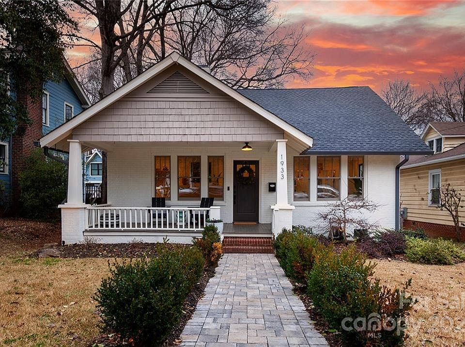 Classic charm meets modern convenience in this perfectly-styled bungalow on a great street in Elizabeth. A magazine-worthy kitchen offers quartz countertops, herringbone tiled backsplash, custom painted cabinetry, built-in pantry w/wine fridge and a Bertozzoni 36" gas range. It opens to the spacious dining room and living room, with fireplace and built-in shelving. There's also a den on this level w/remote shades, a powder room and access to the back deck and fenced backyard. 2 more bedrooms on the 1st floor, along w/a renovated bath. Upstairs, the primary suite encompasses the entire floor with multiple closets, laundry, and a built-in loft office space. The primary bath has a dual vanity, roomy shower and exposed brick wall. Live close to all this beloved neighborhood has to offer (including the Gold Line Street Car), with easy access to the business district of Plaza Midwood and back to Uptown. Enjoy Charlotte's weather on your rocking chair front porch. Welcome home!