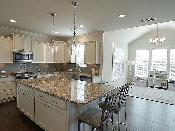 Easy living open floor plan you will love! Brick exterior accents, rocking chair covered front porch as well as screened back porch with plenty of room to relax. Also has indoor and outdoor speakers. The kitchen is a cook's dream w/ granite countertops, large center island with plenty of storage, SS appliances, gas range, & flat panel cabinets. A window just above the farmhouse sink overlooks the fenced in back year. Large breakfast nook off of the living space is big enough for a full size dining room table as well. Spacious second floor, fans in all bedrooms and living room, soft close cabinets house wide, dual vanities, and custom tile finishes in master bath. Laundry room is upstairs and complete with cabinets. Wendell Falls is only 15 minutes to downtown Raleigh and has fabulous amenities to enjoy all year round!
