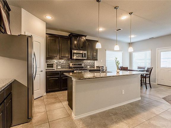 5 BEDROOMS 4 FULL BATHS BUILT IN 2016,home in a well maintained neighborhood ,master bedroom downstairs and secondary bedroom downstairs with full bath,double oven, luxurious colored cabinets and granite with detailed tile back splash,hanging lights in kitchen with large island that overlook the living area,wet bar upstairs in media room for entertaining.Pool and playground across the street for your enjoyment.