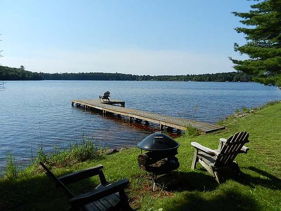 You won't find better swimming frontage for this price with boating access to the chain of lakes! Very level to sandy swimming with a warm Southern view. The home is year around and currently rented! Buy it for your personal use or a great investment! Much storage with a large tool shed, detached garage with studio, and a dandy pole building, too.