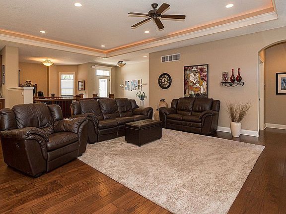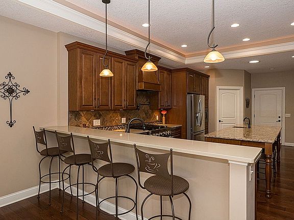 This 3 br, 3 bath, 3 car garage condo is located on quiet cul de sac in a great location. Open main level includes family room, kitchen, dining and den. The gormet kichen includes over sized island, large walk in pantry & wine fridge with storage. Commercial grade stove new in 2020 & microwave new in 2021. Also on main level is master br, bath with heated floor and walk in closet. A 2nd br with built in Murphey bed & storge along with full 2nd bath complete the first level. Lower level includes 3rd br with walk in closet, bath, workout room, game/family room with built in kegerator & beverage fridge along with a video room. Video room has large projection screen with stepped seating. A large tiled patio is off of dining room with a natural gas hook up for grill. Yard is nicely landscaped with decorative concrete edging. Garage is also tiled. HOA handles mowing, irrigation and snow removal.