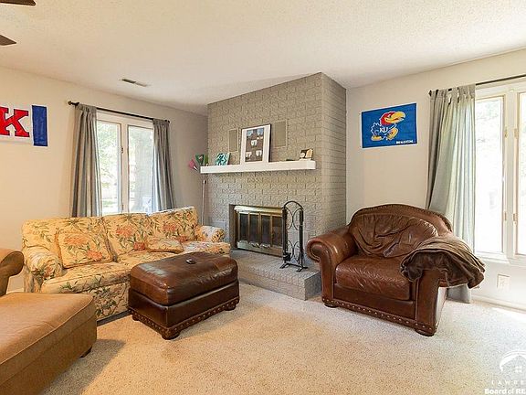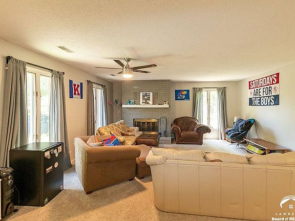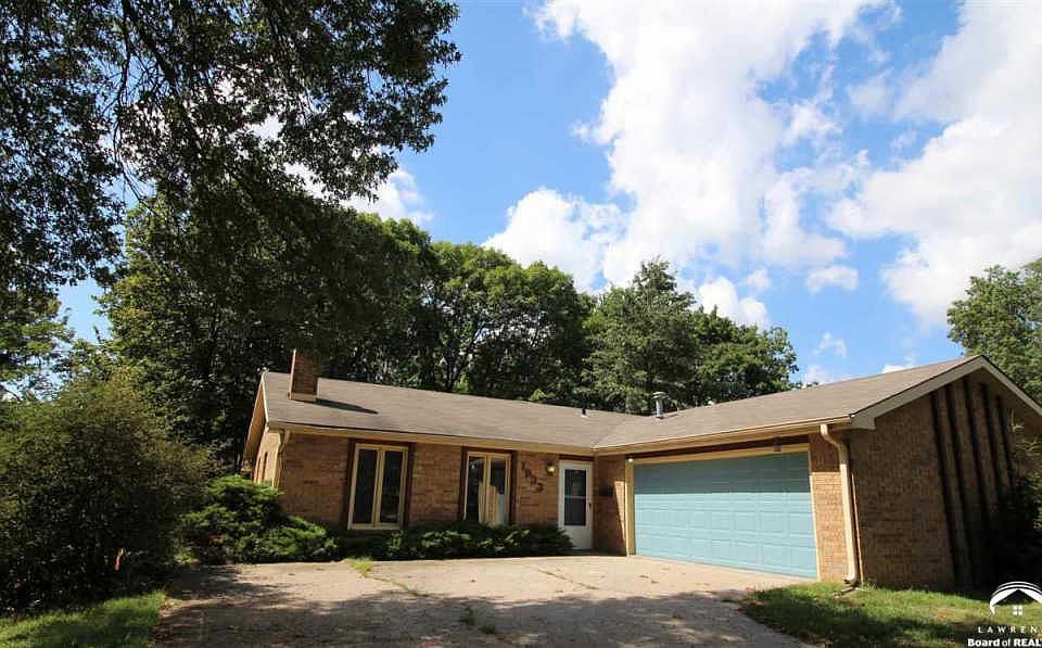 Sprawling ranch two blocks from Allen Field House & the University of Kansas campus. Open floor plan w/ huge living room & large sunroom. In 2015: new interior paint on walls, trim, & doors, new carpet & fixtures, new vanities, lights, tile backsplash, & toilets in the two full baths. Sizeable master w/ private bath & generous walk-in closet. Attic storage in the side-load two car garage, wooded lot, huge deck, storage shed & plenty of windows. All appliances included. Inspections welcome but selling AS-IS.