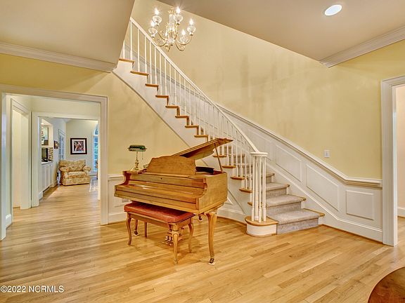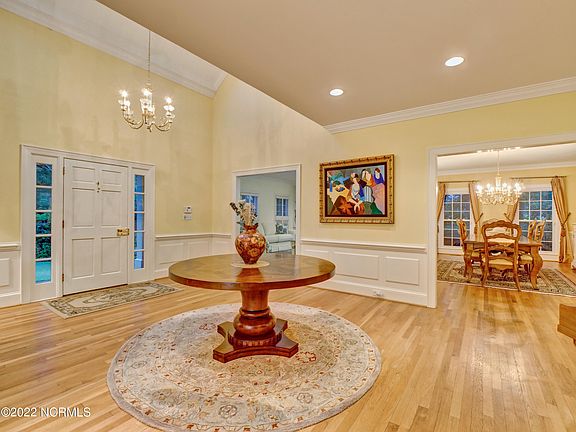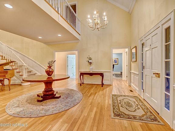 One can easily see why this was one of the very first lots to be developed in Landfall with the expansive view overlooking five holes of the Pete Dye golf course and Pete Dye Lake, Landfall's largest lake, the Dye clubhouse and practice facilities. The half-acre lot is located at the end of a quiet tree lined cul-de-sac and sits high capturing the magnificent views below. This well-designed Brick home features over 5400 ft. of quality construction and includes a gracious floor plan with large rooms including a welcoming foyer with curving staircase, living room, dining room, updated kitchen with huge center island and Sub Zero, vaulted family room, study and first floor master suite. Upstairs are 4 additional bedrooms, three baths and a large walk in attic. This east facing home captures beautiful sunrises over the Pete Dye lake. Enjoy swimming in the pool surrounded by lush landscaping for great privacy. There is additionally a screen porch, grilling patio, fenced rear yard and 3 car garage!