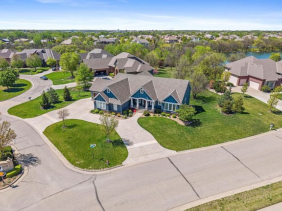 Welcome to this immaculate one-owner ranch in Garden Walk Estates, where luxury and thoughtful design come together to create a truly exceptional, truly custom, home. Nestled on a prime 0.45-acre corner lot with a circle driveway, this 6 BR, 4.5 BA gem offers an ideal combination of privacy and convenience, making it the perfect space for both family living and entertaining. The heart of the home is the expansive gourmet kitchen, which will captivate any culinary enthusiast. Featuring a sprawling 10-ft honed granite island, double ovens, a 6-burner gas range with a convenient pot filler, and a built-in beverage fridge, the kitchen is designed for both beauty and practicality. Custom cabinetry, utensil caddies, pull-out spice racks, organized drawers, a prep sink with a garbage disposal, and dual pull-out trash/recycling stations elevate the space further. A generous walk-in pantry ensures plenty of storage, while the kitchen’s microwave and coffee area tucked behind cabinet doors keeps the space looking neat and polished. For those who need a functional space to work or stay organized, the home includes a well-appointed tech room featuring three built-in desks, a printer cabinet, file drawers, and ample storage. Located near the drop zone, laundry room, and door to the garage, the tech room is designed for maximum efficiency, allowing for a seamless flow of daily activities. The main-floor primary suite is a true retreat, offering privacy and luxury with its spa-inspired en-suite bathroom, including a walk-in shower, soaker tub, and a custom linen closet. Thoughtfully designed for privacy, the home features a split-bedroom floor plan, with five of the bedrooms offering walk-in closets and each bedroom conveniently connected to a bathroom. The second and third bedrooms on the main floor are connected by a beautifully appointed bath—more than just a Jack and Jill setup—offering a shared shower but with separate sinks and toilets.The strategic layout continues with the laundry room, connected to the primary closet and showcasing four laundry basket shelves, a sink and a broom closet. Entertaining is effortless in the fully finished basement, complete with 9' ceilings and a beautiful wet bar with a full-sized refrigerator, sink, disposal, and dishwasher—perfect for hosting guests or creating a self-contained living space. The basement also a family room with a gas fireplace, a ping pong (game) room, surround sound, three bedrooms, 2.5 baths, and a true walkout to the private backyard, where you’ll enjoy breathtaking views. Outdoor living is a highlight of this home, with an extended composite deck that offers both covered and uncovered sections for year-round enjoyment. This space is perfect for gatherings, with built-in wiring for an outdoor TV and a sound system to enhance your entertaining experience. A dedicated basement half bath, accessible from an outdoor entrance, is conveniently located near the potential pool or hot tub area. The home is filled with smart, tech-forward features, including Wi-Fi thermostats, a security system with Ring cameras, and a whole-house water softener and filtration system for added convenience and peace of mind. With ample storage throughout, this home is designed to keep you organized. Energy-efficient upgrades such as Class 4 shingles and a humidifier system in both HVAC units add further value. The 4-car garage with Wi-Fi openers, double fireplaces in the living areas, soft-close cabinetry, and wide plank wood flooring throughout the main living spaces all contribute to the home’s elegant yet functional design. This extraordinary home, in the Andover School District, offers an unparalleled combination of luxury, comfort, and style, with room for the whole family to grow and entertain. Whether you’re hosting friends in the chef’s kitchen, relaxing in the spa-like primary bath, or enjoying the serenity of the backyard views of the pond behind the home, this home has it all; don't miss!