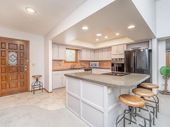 * MULTIPLE OFFERS: HIGHEST & BEST DUE NO LATER THAN 9 AM, THUR. 10/27/22. OFFER MUST INCLUDE ALL BUYER-SIGNED MLS DOCS + PREAPPROVAL OR PROOF OF FUNDS IN ORDER TO BE CONSIDERED * Don't miss this immaculate ranch! You will be welcomed inside to the open concept kitchen and living rooms. Notice all the updates in the kitchen such as quartz countertops, recessed lighting, tile backsplash, and natural light from every direction. The center island doubles as an eating bar and is a great central location for coming together. The living room features a fireplace with white brick surround, vaulted ceiling, and a sliding glass door to the sun room. The sunroom could easily become a bedroom or office if needed because it is heated and cooled. However, we think you will love the peaceful space just as it is...with warm wood plank surround and brick floor. It is all set up and ready to go for a hot tub if that's something that is of interest. One side is complete with 5 double windows and there is even access to a private, outside patio space. There is also another sliding door entrance into the main bedroom. With one main floor bedroom, you will love how HUGE it is. No need to worry if you have over-sized bedroom furniture...this one has the space to accommodate. There is a vaulted ceiling with skylight for great natural light plus a built-in vanity or desk space with built-in cabinets for storage, too. Be sure to check out the walk-in closet which also features built-in shelving, plenty of hanging space, and a laundry shoot for your convenience. The main floor bathroom connects to the master bedroom but also has hall access for guests. This gorgeous bathroom has also been updated with granite countertops, modern white sink basin, and plenty of counter space on each side. There is a good deal of storage space beneath the vanity but also loads of additional shelving space for linens and the like. An over-sized walk-in shower with tile floor and surround complete this neat space. Downstairs at the base of the stairs you'll find the separate laundry room and a second, large bedroom which also includes a great walk-in closet with built-ins. The egress window has been updated with a ladder, and features a transparent cover for natural light and includes a hydraulic lift for easy escape but also locks for safety and protection. Down the hall is another full bathroom with updated lighting and a tub/shower combo that has never been used. There is also a nice, deep linen closet in this bathroom as well as in the vanity space beneath the sink. Finishing off the basement is a family room with gas fireplace and brick surround. PLUS, the selling point for this owner was the built-in desk, bookshelf, and TV cabinet perfect for whatever your hobbies might be. Speaking of hobbies, the over-sized, 2 car garage has a great workbench along with an added storage loft, and a very quiet garage door opener. You can also access the back yard through the garage and enjoy the beautiful landscaping! There is even a side access into the back yard with potential for a little revamping to add off-street RV/camper parking. This home isn't just a charmer, it's in superb condition and has been well-maintained. The cedar siding was stained by hand for a good seal and new outdoor lighting has been installed. The lawn has been re-seeded twice and the owner has regularly maintained systems and services for the property. Custom blinds were installed throughout the home and although the basement fireplace wasn't used, it was still serviced. Welcome home to this move-in ready, quiet cul-de-sac on the west side!