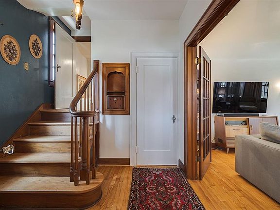 Step into one of the original parishioner homes in Gatewood with thoughtful updates that maintain its historical beauty. The sunny, arched door opens into a moody entryway with a carved wooden banister. French doors lead into the light-filled living room. Lovely features like the barrel ceiling, original woodwork, working fireplace, and original light fixtures truly make this home special. Another set of French doors leads to a spacious dining room. It's perfect for hosting, but the real show-stopper is the kitchen.