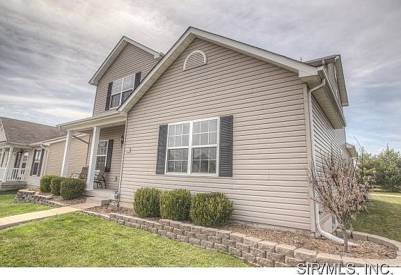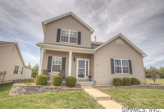 Need space that is affordable and move in ready? You've found it with this gem in a great location. Main floor boasts Kitchen with 42" cabinets, large pantry closet, stainless steel fridge, updated white subway tile backsplash, large dining area w/ built in planning desk, bright living room, 1/2 bath & utility room. Main level master suite has vaulted ceilings, walk-in closet, & bathroom w/ double vanities, make up area, garden tub & separate shower. Most of the first floor has updated beautiful wood laminate flooring added in '16. Second floor features 3 great sized guest bedrooms, full bath, & loft area. Awesome basement with a large family room, dry bar, bonus space, & extra storage. Basement is also plumbed for a bathroom for future expansion. Located in a beautiful scenic neighborhood with walking trails, sidewalks, pond & more. Rear entry 2 car garage. Very close to elementary and junior high schools, highway, and easy access to Scott AFB or St Louis. Don't miss this great home!