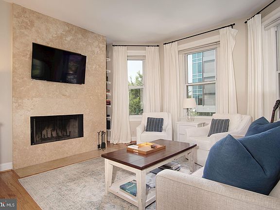 OPEN HOUSE SAT 6/13 & SUN 6/14 BY APPOINTMENT. Discover this large, bright, delightful Dupont Circle condo in an 1890 turreted Victorian. A thoughtful renovation blended architectural details with modern upgrades. The spacious Living Room is made cozy by a wood-burning fireplace and built-in cabinets. When we can begin socializing again, you'll be able to welcome all your friends for dinner in this large separate Dining Room! Pass-thru to updated kitchen with pantry. The Main Level is completed with a Powder Room and full-sized washer/dryer. Sunlight abounds through oversized windows, including angled bay windows in the Living Room. Multiple large closets, including the Bedroom walk-in, have Elfa shelving. Your private entrance leads to a charming outdoor sitting area. Superbly located on a quiet street, yet very close to shopping, restaurants, transportation and more. On-site rental parking space is available for $225/mo. Pets are welcome!