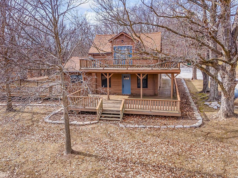 You won't want to miss out on this beauty on 3.54 acres just outside of Valmeyer, IL. Outside boasts a large deck that wraps around the entire home, a detached storage shed, and a spacious yard and parking area. Step inside the home to find a large kitchen with new countertops and stainless-steel appliances. Through the kitchen you will see a dining area and family room that has a wood burning fireplace and access to the back deck. The main level also provides a large master bedroom with a walk-in closet and a brand new master bath that includes a walk-in shower, double vanity sinks and a bathtub. Located down the hall is the second bedroom, full guest bath with a beautiful skylight, and a utility room that has easy access to plumbing for washer/dryer hook ups. Upstairs is the 3rd bedroom with deck access and a gorgeous full bathroom with walk-in shower. HVAC 2019, HWH 2020 and 2003, Master Bed & Bath new 2022, Upstairs Bed & Bath new 2022, Water Softener new 2023. Being sold as-is.