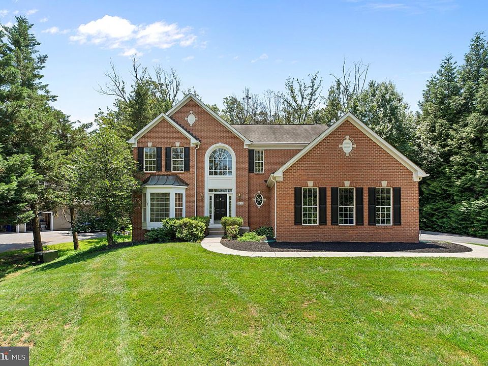 Nestled back on almost 1 acre, this beautiful brick front Colonial boasts over 4,500 sq. ft. of luxurious living space, with its own backyard private retreat highlighting a Koi pond and waterfall on an expansive stone patio surrounded by lush landscaping and backing to woods for privacy. Rich in comfort and style, this home has been lovingly maintained by the original owners, with recent updates including gorgeous, refinished hardwood floors, new carpet, and a fresh neutral color palette throughout. Enter the two-story foyer that opens to the sun filled living and dining rooms, offering three bay windows and embellished with accent molding, creating the perfect ambiance for intimate gatherings. The chef's kitchen features an oversized island and breakfast bar, 42 in. wood cabinetry, with a brand-new stainless dishwasher, and adjacent breakfast room surrounded by windows allowing abundant natural light and access to the backyard. A cozy burning gas fireplace set in an elegant cream marble surround, creates the focal point of the off-kitchen family room. Ascend the wide oak staircase to the renovated primary suite situated under a high vaulted ceiling, offering a walk-in closet with a window, and en suite bath with a soaking tub and frameless shower with ShowerGuard glass accented with decorative tile inlay, and a granite dual vanity with storage. Four bedrooms and a hall bath complete the upper-level sleeping quarters. The lower level provides a spacious recreation room with a wet bar, full bath, a media room with a walk-in closet, and ample storage space. Enjoy outdoor living in your own private oasis under mature shade trees, and the serene sounds of a waterfall and Koi Pond. Close proximity to shopping, dining, and entertainment with major commuter routes 40, I-70, and MD -97 for easy access to Baltimore and Washington D.C.