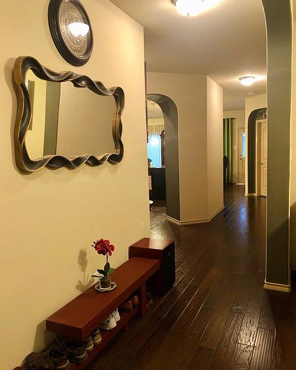 Looking for a home with plenty of upgrades ? Built in 2016. HARDWOOD floors throughout, with the exception of the FOUR bedrooms. Open design features 4BR, 2BA, DAG. Kitchen features granite countertops, room for barstools, gas stove with exhaust fan venting to exterior. Drapes to convey. Covered patio in backyard, with small decorative pond. Move in ready!
