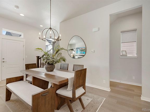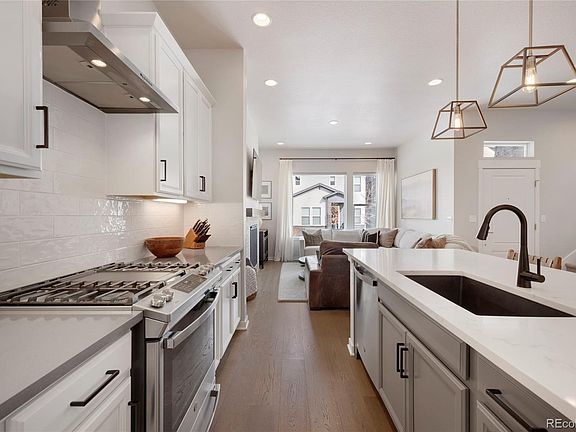 Welcome to this thoughtfully planned Baseline home with designer finishes throughout. The high ceilings bathed in abundant natural light is only the beginning of the overall charm of this gem! The living room fireplace adds a comforting and inviting ambiance to the open floor plan. Built for entertaining, its beautiful kitchen boasts high-end upgrades including 42” upper cabinets, an additional wall of cabinets-all with pull out shelves and dove tail drawers with soft close, built-in trash bin, quartz counters, a large island, gas range and hood vent, stainless appliances, and a walk-in pantry. The main floor features engineered brushed maple hardwood floors, a half bath for guests, and a mudroom-like area just inside the door of the attached two car garage, which is wired for charging EVs. The spacious upstairs loft separates the primary suite from the two secondary bedrooms and their shared full hall bath. The oversized primary bedroom’s overall sense of luxury includes two large walk-in closets, an ensuite bathroom with quartz counters, tile backsplash, pull out drawers, and a roomy European style walk-in shower. The laundry room has built in cabinets and a quartz counter, and is conveniently located on the upper level. This beautiful low-maintenance home is move-in ready. Furnished with privacy custom roller shades on every window. Situated on an HOA maintained greenbelt allowing a home-owning experience free of weekend yard work. Baseline is an easily accessible community with 145 acres of parks, open space, wonderful dining and shopping close by. The future Center Street District offers an artful urban vibe that promotes small-town friendliness with the convenience of specialty shops and restaurants. Easy access to Denver/Boulder, Northwest Parkway, and DEN. Don’t miss the opportunity to live in a home you’d be proud to call your own!