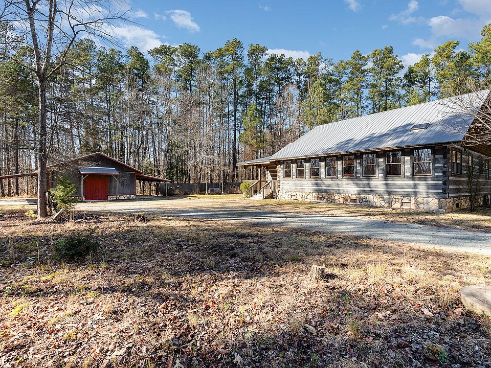 OFFER ACCEPTED. WAITING FOR DD DELIVERY Hearthstone Built Log Home on 8 acres. Just minutes from Carrboro Main St. Business District. Perfect for a Micro Farm or a Peaceful Place to call Home. Ranch that offers a split floor plan with Owner's Suite on opposite side of other two Bedrooms. Gorgeous Stone, Wood Burning Fireplace also plumbed for Gas. Large Sunroom/Dining and Additional Flex Room along back side of home with beautiful sun filled space. Kitchen offers lots of counter space and pantries for storage. Separate Laundry Room. 2018 Metal Roofing. Both Front and Back large covered porches to enjoy the sunrise and sunsets. Large Barn-Workshop & Two covered car ports.