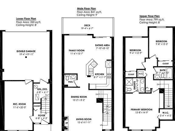 MONTEBELLO - Rare large townhome with double side by side garage & extra parking. Main floor features high ceilings, gourmet kitchen with granite countertops, stainless steel appliances. Main floor has a living room, dining area, family room, eating area, generous deck off kitchen for entertaining. Upper floor includes 3 good sized bedrooms, master with walk-in-closet & ensuite with double sinks. Downstairs, there is a large open area, perfect for a media or a recroom. Mirrors are mounted on one wall making it ideal for a gym or studio. There have been several upgrades including paint & flooring. Large double garage with parking behind & you have street parking right in front of your entrance. Home, garage, porch and deck gives you 2,672 square feet of private space.