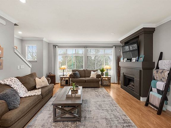 MONTEBELLOW in Clayton. Hit the parking POT OF GOLD w/4 Car parking! Side-by-side double garage, driveway pad + cul-de-sac street spots for visitors! This home offers 1,965 sqft, 9' ceilings on the main floor w/ oversize windows to allow maximum light, gorgeous mountain views, no houses looking directly at this unit, 3 spacious Bdrms + large RECROOM. Kitchen has granite countertops, abundance of shaker cabinets, under-mount sink, SS appliances, raised breakfast bar island & sliding glass door to your private patio. Upstairs master bdrm w/ room for your king size bed [Incredible Sunrise views!]. Super quiet, great private location just steps to Pond, Katzie Elementary school, bus stop and shopping.