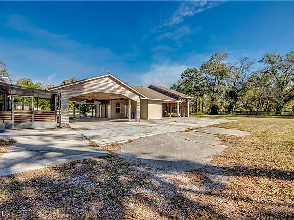 Discover your own private retreat! Tucked away on a charming 1-acre lot, this hidden gem is surrounded by majestic oak trees and fruitful landscaping, creating a peaceful setting the moment you arrive. Step inside to a warm, inviting home with a surprisingly spacious layout—offering 3 bedrooms, 2 bathrooms, and just under 1,700 sq. ft. of comfortable living space. The primary suite features an oversized walk-in closet, giving you all the storage you need. The updated kitchen shines with stainless steel appliances, while tile and vinyl flooring throughout the home mean no carpet to maintain or replace. Major upgrades provide peace of mind, including a 2018 metal roof, new windows installed in 2022, and a 2023 AC unit. Even the well and well pump were replaced just six years ago, ensuring long-term reliability. Outdoors, enjoy the serenity of a tranquil koi pond, and take full advantage of the 5+ covered parking spaces plus a workshop/garage—ideal for hobbies, dry storage, or keeping all your toys protected. There's more than enough space to park a boat or RV, and the fenced-in yard with a gated entrance offers both privacy and security. Room for Barn, Stalls, and much more. Conveniently located near I-75, this property is perfect for first-time buyers or anyone looking to downsize without sacrificing comfort or freedom. Opportunities like this don’t come often—schedule your tour today and see what makes this property truly special!