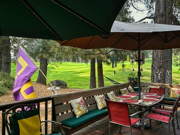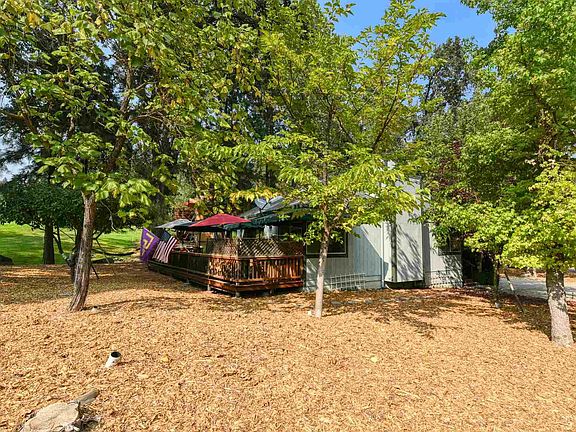 Level quarter acre fairway lot, viewing the 17th green. Great location in a neighborhood popular for walking and close to beaches, Country Club/Grill, and community pool; quick access to downtown Groveland. Bright "great room" style floor plan featuring whitewashed vaulted ceilings with skylights, Brazilian Cherry laminate flooring, and wood burning fireplace with rock surround. Golf course views from living, dining, and kitchen areas. Kitchen features refaced cabinets with pullout drawers, granite counters with breakfast bar, dual basin sink, garden window, and stainless appliances. Sunny dining area with slider access to deck. West facing redwood deck with golf course views, featuring built in benches and hot tub. The deck is well shaded by beautiful oak and pine trees and gets a nice breeze. Low maintenance yard with an apple tree that produces three varieties of apples. Master bedroom upstairs with two vent-able skylights, reversible ceiling fan, and plantation shutters. His and hers closets lead to master bath with vent-able skylights and shower. Loft area off of master with skylight. Two bedrooms on main level with mirrored closets and ceiling fans. 2nd bathroom with shower over tub. Inside laundry, washer/dryer stays. Central HVAC - all electric. 2 Car Carport which could be converted into a garage; adjacent hobby shop/storage room. Level driveway provides easy access and extra parking. Some furniture and antiques for sale/negotiable.