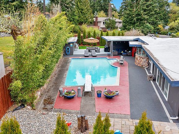 Mid Century Gem in Kenmore on Large corner lot. Short Walk to Breweries, restaurants, and coffee shop. Huge family/living room with gas fireplace. Large Dining room off the spacious updated “kitchen in the round” with new cork flooring. All three bathrooms have newly completed full remodels with the 2 main bathrooms taken down to the studs with all new plumbing and electrical. Huge primary bedroom with attached bath. Finished Garage with extra outlets. Split system AC with 2 separate heat pumps installed in 2022. High efficiency boiler for radiant heat. New electrical panel in 2022. The backyard is a resort style entertainment space with your own heated pool. A new pool heater and filter were installed in 2022. Just in time for summer!!