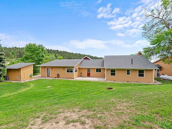 Fantastic country home located between Belle Fourche & Spearfish. Approx. 1.4 acres. Incredible country views. Ranch Style home with partially finished 2nd level area. The main level consists of 3 bedrooms, a living room, dining room, a kitchen, family room, 2 baths, office, and back porch. There is a coffee bar area with a sink in the living room, Kitchen has a pantry that is extra deep for extra storage. Great property for anyone wanting country living, main level living w/zero entry-. The seller has owned this home for approx. 16 years & the following improvements have been made: Took garage area & turned it into a living room, kitchen, dining, bath, & foyer area and built a new detached 24x30 garage insulated, sheeted, & heated. Smartside siding was added approx. 6yrs ago, reshingled appx. 6 years ago upgraded heating, plumbing, & some electrical as well. The septic system had a new sewer line from house septic tank installed 4 yrs ago. Seller added 3 barn doors and some tray ceilings throughout the home. The property has wonderful country views, and a great location North of Belle Fourche 5 miles or 5 miles South to Spearfish. The property has apple, trees, chokecherry trees, & crab apple trees. 2 sheds in the backyard will stay with the property. The lot lines may be a little confusing and the agent will gladly explain or show the buyer's agent approx. lines based on the attached plat/sketch. Recently surveyed by a neighbor, please see the sketch in Paragon docs.