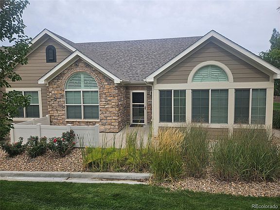 Maintenance free patio home in the highly sought after Villas at Great Plains. This is the one you have been waiting for! Move in ready with newer beautiful, low maintenance LV wood flooring & Newer Carpet, crisp newer paint throughout, including doors and base and case, new lighting, newer primary bath flooring and a newer Trane furnace and air conditioner. Largest floor plan in community. All main floor living with no stairs, two bedrooms, two baths, plus an office and a large, sunny bonus room with wrap around windows. Kitchen has granite countertops, pull out shelving in lower cabinets, breakfast bar and opens to the large great room with vaulted ceilings and a gas fireplace. There is a large laundry room with a utility sink and a storage room with custom built-ins. Garage has plenty of storage as well with ample built-in cabinets and attic storage. Great location on a quiet street with close proximity to the clubhouse, pool and trails. Easy access to DIA, 470, Murphy Creek Golf Course and a short drive to Southland’s Mall and the Aurora Central Recreation Center.
