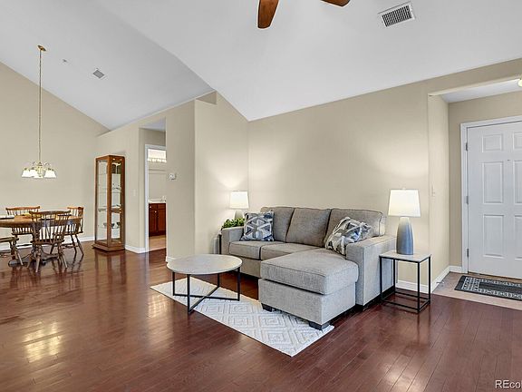 For the busy Homeowner this Lock and Leave, Maintenance Free immaculate patio home in the highly sought after Villas At Great Plains is now available. All main floor living, no stairs and very open floorplan. 2 bedrooms, plus a bonus garden room, draped with natural light and French glass doors. Separate dining room, kitchen with eat in breakfast bar and loads of cabinets. Vaulted ceilings and gorgeous upper end windows. Separate laundry room with utility sink, extra cabinets and a bonus walk in finished storage room. Large primary bedroom and bathroom with walk in shower glass doors and walk in closet. 2nd bathroom is full with shower/tub next to 2nd bedroom with a large walk in closet. Upgraded Cabinets and Flooring! Front sitting patio, storm door and large 2 car garage with and extra cabinets. Orientation of this property offers privacy. Easy access to E470, DIA, Buckley AFB, Murphy Creek Golf Courts and shopping centers. Enjoy a short drive to Southlands Mall, Movie Theaters and restaurants. This Gently Lived In home is ready for a buyer and can accommodate a quick close.