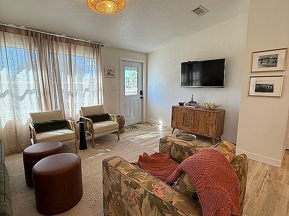 Beautiful Skyline on a large double located in Siesta Bay. This home has been completely gutted and remodeled in 2023 with all new electrical, flooring, appliances, quartz counter tops, upgraded cabinetry and screens in the lanai. This home has a large car port, 10x10 shed, hurricane shutters and window tints. This home has been remodeled by a licensed contractor and was granted a certificate of occupancy as well as the certificate of mold remediation. LOCATION, LOCATION, LOCATION....4 miles to downtown Fort Myers Beach and only 4 miles to the Sanibel Causeway. This is a 55+ golf cart community with lots of activities i.e. pickle ball, golf simulator, 2 pools, hot tub, shuffle board, water aerobics, gym, library, tennis, bocce, horse shoes.... as well as lots of fun social neighborhood get togethers!