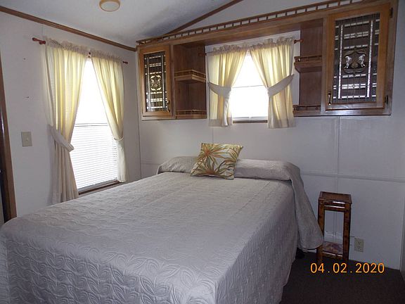 Move in ready 1 bedroom with 1.5 baths, 748 square ft home in the active Siesta Bay Resort with a current monthly lot fee of $652.00. The owners have taken care of all the work for you with a new roof over in 2018 and all new appliances, blinds and commodes inside the home. The AC is only 5 years old and has been serviced regularly and the lanai was added in 2007. The home sits on a concrete slab, so no dirt under the home. The home is being offered fully furnished with a full-size bed in the bedroom and a queen sleeper sofa in the living room and it comes turnkey.