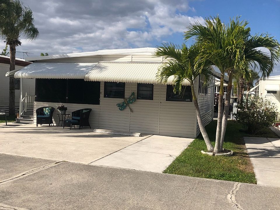 This beautiful home is located minutes from Sanibel Island, Ft Myers Beach and Bunche Beach. This turnkey home is in the very desirable and active 55+ community of Siesta Bay. The location within the park is near all the amenities, with a wonderful street view of the lake! This 1 bedroom, 2 full bathroom home has been recently updated, and the best part is that the AC was just replaced in 2020! The very beautiful lanai greets you just as you walk into this charming home. The lanai has all new upgraded sliding windows, which helps keep it cool from the sun, but super easy to enjoy the wonderful Florida breeze! There is new wood laminate flooring throughout the home, new LARGE pantry, new windows, and new drywall in the kitchen. There is an additional large closet in the hallway just outside the master bathroom and bedroom. The master bedroom offers a ton of natural light and has a door leading to another hallway containing the laundry room and the second full bathroom. Having a second full bathroom is so wonderful and gives privacy to guests, when having the lanai double as a second bedroom! There is a small back deck with 2 storage closets, and a side patio fit for patio furniture and RELAXING! The current lot fee is a low $650/month. You need to see this sweet home..but it won't last long with this excellent price. Come get your piece of Paradise!!