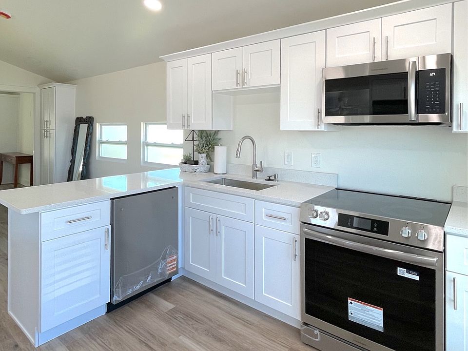 **This home offers great rental potential for extra income or seasonal stays. Sun Resorts and Residences-Sanibel Gateway, is one of the rare parks that welcomes Airbnb rentals - a huge bonus for owners!** Welcome to your perfect little beach retreat! This charming 2-bedroom, 1-bath home in the sought-after 35+ community of Sun Resorts and Residences-Sanibel Gateway has been completely refreshed from top to bottom. Everything is brand new, from the vapor barrier and subfloor to the stunning luxury vinyl plank flooring, cabinets, stainless steel appliances, fixtures, and even the roof and windows! Enjoy a rare, unobstructed view of the lake right from your doorstep-perfect for your morning coffee or evening sunsets. Whether you're looking for a year-round home or a sunny seasonal getaway, this cottage combines modern comfort with a relaxed coastal vibe.Located just 2.5 miles from Fort Myers Beach, you're close to the beach, trolley service, bike paths, and nearby Sanibel and Bunche Beach for shelling and relaxation. This is an unmatched value-your beachside PEACE of PARADISE awaits!!! WELCOME TO WHERE SOUTHERN COMFORT MEETS the BEACH.