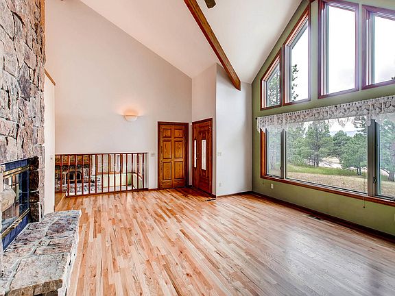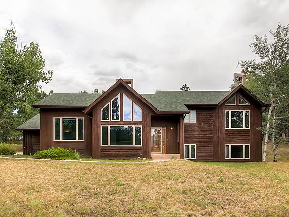 Welcome to this nicely updated home, nestled in the trees on a quiet street in Woodmoor. The main level of the home features a hardwood entry, great room with a spectacular moss rock fireplace as well as vaulted & beamed ceilings, formal dining room, kitchen updated with slab granite counters and large breakfast nook that walks out to trex deck. The upper level has a master bedroom with wonderful mountain views, tiled bath & double closet, 2 additional bedrooms and another full bath. The lower level is complete with a spacious family room showcasing a moss rock fireplace, office/craft room with built in shelves and ¾ bath. Other features include Anderson windows, all in immaculate condition, newer roof & water heater - ready to move right in!