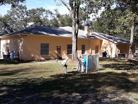 4 bedroom, 2 bath (pool bath) 3 car attached garage 1 car detached garage. 3 sets of sliding glass doors leading to screened salt-water pool and lanai. Double front door entry, formal living room, formal dining room, eat in kitchen, 19x20 family room. Master bedroom is 14x22 with dual walk-in closets, walk in shower, whirlpool tub. Other 3 bedrooms are 11x13, 11x11 and 11x10. 2510 sf under air, total sf 3,649. Fresh exterior & interior paint in 2014. Cottage- (craft room, office, or man cave) Property is fenced with field fence and gate. Remolded in 2014. New A/C unit in 2015. House sits back around 375 ft. from private paved road. Perfect for horses. Call Owner (352)797-0110 (352) 650-8070