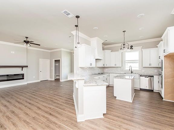 Loaded with custom features Master Over sized soaker tub, 6 foot custom marble shower, Frameless shower glass/door, double vanity, separate hot water heater for master Kitchen Custom Maple cabinets shaker style painted, stainless appliances, built in wall oven and microwave, farm sink, 3cm granite, island and bar, crown in open area double insulated windows, fiberglass 8ft. double front door/ wood grain/stained.gutters electric fireplace with mantel above.fenced in back and side yard large.
