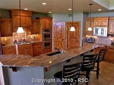 Fantastic quality throughout This home is not a distressed property and we can close quickly Econtracts ready It is immaculately kept and move in ready Walk out master suite w fireplace AND 3 more mini suites all with walk in closets and full baths Everything from knotty alder window casings to wideplank hickory floors slab granite stainless open floor plan Oversized 4 car garage with work bench Fantastic lot that backs into the 80 acre Younger Ranch Complete privacy out the back for as far as the eye can see D38 schools as well