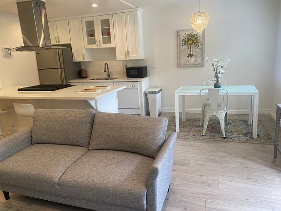 Bright and sunny apartment located in a peaceful neighborhood. The apartment has a newly fitted kitchen with dishwasher. The flooring is light grey oak with pale white walls. The unit has a little table and chairs outside on the patio for your use. A garden to the front also has seating to relax. It comes fully furnished with a King size bed. Wifi and all utilities are also included. The apartment is located very close to downtown Santa Monica and the beaches. Metro and local buses are walking distance. Groceries stores close by are Ralphs, Traders Jones & Whole Foods. A local library and recreational park are also within walking distance. Santa Monica College close by has a full training swimming pool, running track.