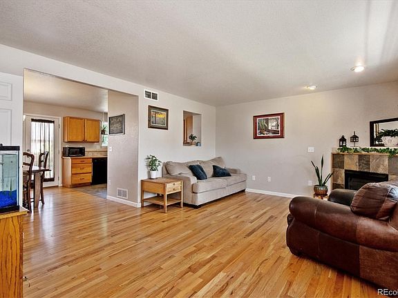 Cute Strasburg East home on an oversized lot! Great front porch for watching Colorado sunsets! Sunny main level family room with charming corner fireplace and hardwood floors extending to the dining room! The kitchen features abundant oak cabinets and laminate countertops, new tile flooring, and all kitchen appliances are included! Handy powder bath on the main level for guests! Upstairs there are 3 sizeable bedrooms with new carpet, and a full bath with new tile floor and tub surround! The basement is ready for your finishing touches...a 3/4 bath has already been added! Kids and pets will love the HUGE backyard, and there's a new concrete porch ready for your summer BBQs! Great location with all schools just a 2 minute drive or 10 minute walk away! Easy access to I-70!