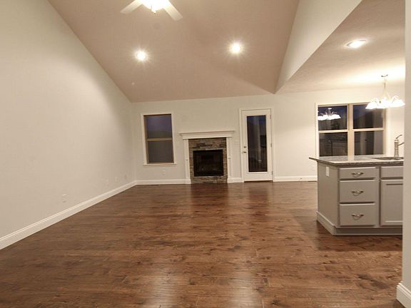 Newly added 4 person storm shelter in garage. White/gray interior paint in kit/liv room/master bedroom/bath. Gray subway tile back splash with granite countertops and a new gray cabinet color...come take a look! Engineered hardwood thru living room, optional formal dining area, kitchen/ dining and hallway and large walk in pantry. Open floor plan with fireplace in living room, split bedroom plan and spacious backyard. Master bath has a 4' shower, large walk in closet and double vanities. Apprx 1575 SF with brick/stone vinyl exterior. Sprinkler system in front and side yards. Appliances include stove, microwave, free standing range, dishwasher, garbage disposal, and fridge. Renter pays for all utilities. Responsible for mowing. No smoking allowed. Pets allowed upon approval.
