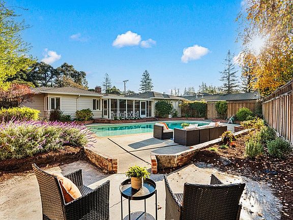 Set on an expansive 11,100sf lot in the ever popular White Oaks neighborhood, this 2,670sf single level home is the one you've been waiting for! Enjoy the sun-filled living room with vaulted open beamed ceilings, fireplace & newly refinished wood floors! Updated kitchen with new cooktop, granite counters & white shaker cabinet and breakfast nook. Formal dining room with plantation shutters. XL family room open beam ceiling & new carpet opens to the spacious sunroom the looks to the backyard retreat! 3 spacious bedrooms, includes 2 ensuites + additional office/library. Detached 2-car garage features a new garage door and bonus room for tons of storage! The professionally landscaped yard offers the quintessential California outdoor living experience, dine under the stars or sip your morning coffee on the patios overlooking the pool! Additional highlights include fresh paint inside & out, newly refinished wood floors, new carpet, plantation shutters & more! Walk to top-rated White Oaks School! San Carlos ~ The City of Good Living! Offering a charming downtown with fine dining, boutiques, coffee shops, parks, library, community center & CalTrain. Conveniently close to Snowflake, Google, Box, Meta, Oracle, Stanford & more! Convenient to SF & Silicon Valley.