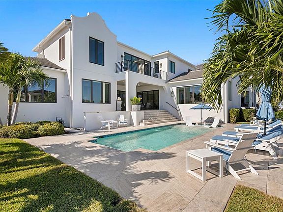 Located near the end of a quiet cul-de-sac in the desirable waterfront community of Venetian Isles, this 2020 custom-built masterpiece by Bright Bay Builders delivers luxury, craftsmanship, and wide-open water access with no bridges to Tampa Bay. Offering 4,472 sq ft of living space the home sits high and secure with no flooding inside and showcases the best of modern coastal design. Inside, five spacious bedrooms and five full baths (including four en-suites) offer privacy and flexibility for family and guests. The open-concept living area features designer finishes, French oak and cypress flooring, and walls of windows framing stunning views. The gourmet kitchen is equipped with a 48" Sub-Zero refrigerator, Miele crystal dishwasher, Wolf gas range and hood, Wolf microwave, Viking French-door wall oven, and warming drawers, complemented by custom Allikriste cabinetry and striking tilework. A separate game room includes a Marvel beverage center, ice maker, and Danby Pro wine refrigerator. Outdoors, a private courtyard entry with travertine pavers and fountains leads to a resort-inspired backyard with a saltwater pool featuring glass tile, pebble-sheen finish, a swim-out sun shelf with bubblers, umbrella sleeve, six deck jets, and Hayward “Omni Logic” smart automation syste. The private dock includes two boat lifts, lighting, and direct open-water access to Tampa Bay. Additional highlights include Eden Coast composite garage doors with whisper-quiet openers, keyless entry, and impact-rated construction for peace of mind. This exceptional Venetian Isles residence offers the ultimate in waterfront living—luxurious, secure, and thoughtfully designed for life on the Bay.