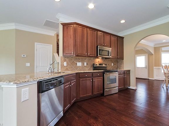 Impressive and immaculate townhome with many upgrades plus a fantastic location backing to large common area. Features include wood flooring, master on main, garden tub, rounded corners, arched doorways, heavy crown molding, granite, stainless appliances, open floorplan, covered back porch, gas logs, WICs with custom shelving units, huge walkin unfinished space - great for storage or could be finished. New interior paint. Must see this home!