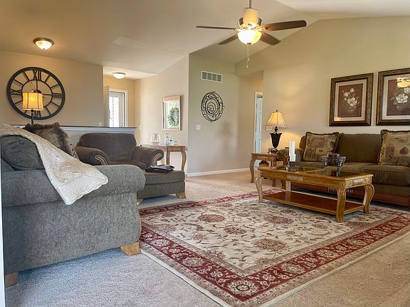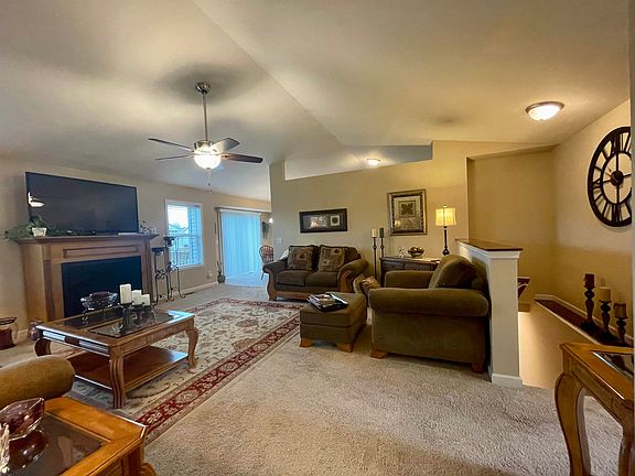 Beautiful Inside and Out! Meticulously maintained four bedroom ranch with many updates and upgrades. Neutral color palette throughout will compliment any style. Plenty of windows to let the sunshine in. Cathedral ceilings add to the spacious feel, yet the custom ventless fireplace keeps the space cozy! All appliances stay which include a 5 burner stove (2019), French door refrigerator with bottom freezer (2018), washer and dryer (2018). Two large pantry cabinets (kitchen) and laundry room cabinets added (2018). New kitchen faucet. The finished 3 car garage has fully insulated walls & extra electrical has been added. Both bathrooms have updated double shower heads. The lower level has been professionally finished to include a fourth bedroom with an egress window and secure window well closure. The 12x12 deck has been freshly stained and is ready to be enjoyed! Driveway to be sealed prior to closing. Water heater replaced 2022.