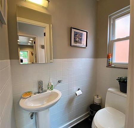 A 1930 home with a modern touch. This single-family, three-bedroom home is an unexpected surprise tucked into a tree lined street in Squirrel Hill. This house continues to unveil itself from the moment you walk into the discreet entrance and transitions to the main open concept kitchen and dining area & living space with its 18-foot ceilings, signature feature wall & fireplace, restored hardwood floors, & contemporary chandeliers that frame the beautiful trees that shade the backyard & deck. This home includes an updated kitchen w/newer backsplash, floor tile, fixtures, & appliances as well as a newer quartz island. There is one bedroom and a powder room on the first floor ideal for guests. On the second floor, there is a master suite with a newer master bathroom and an office/walk-in closet, another large bedroom, & a renovated full bathroom. The upstairs has all newer hardwood floors. Newer modern ceiling fans, fixtures, windows, AC unit, window lintels. Freshly painted exterior.