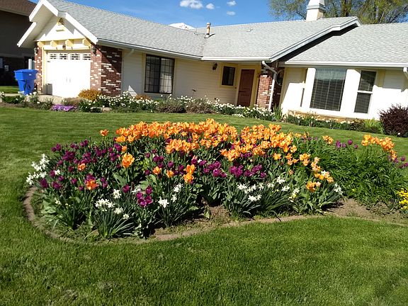 Under Contract- Prime location west-facing patio home on .26 acres featuring a fabulous view. Home boasts updated kitchen, baths, and a master bed with plenty of storage. The interior opens to a spacious entry-way presenting a great room with vaulted ceilings and a stacked stone fireplace. The kitchen has refinished cabinets, solid surface counters, tile flooring, and a decorative backsplash. Kitchen is naturally lit by a south-facing garden window and a large bay window. Wainscoting surrounds the spacious Master Bed with vaulted ceilings. The Ensuite Master Bath has a soaker tub, separate shower, double sinks, and a large walk-in closet. The yard is beautifully landscaped, shaded, and fully-fenced. Amenities include: high efficiency windows, new water heater, wood-fireplace, central air, culinary and secondary water, automatic sprinklers, storage shed, appliances, window coverings, covered back porch, and a brick patio. Call today to schedule viewing! Text anytime, phone hours: 5-9 pm weekdays, anytime weekends. Showings by appointment only. Price to be adjusted for buyers with realtors. Pre-approved buyers only.