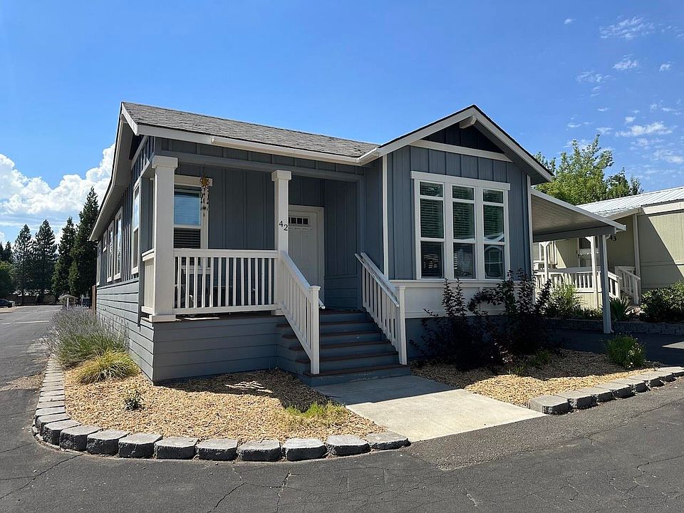 Discover modern living in Shadow Mountain mobile home park, in Mount Shasta, CA. This 2019 manufactured home offers 3 bedrooms and 2 bathrooms, the home features soaring vaulted ceilings that create an airy ambiance. Step into the expansive kitchen, complete with a central island, and immerse yourself in the seamless open-concept layout, perfect for entertaining guests. Abundant storage, central heat / AC, welcoming front porch, fenced backyard and storage shed. Positioned at the rear of the park and situated on a corner lot, with no neighboring structures on its southern side. Shadow Mountain mobile home park offers a community that welcomes all ages, fostering a vibrant atmosphere. Prospective buyers will need to obtain park approval. Located minutes from town, lakes, trails, golfing and Mt Shasta ski park. Park does not allow for rentals. Space rent is $622 per month.