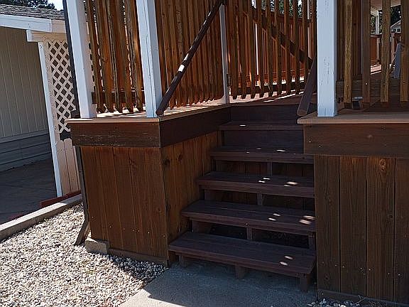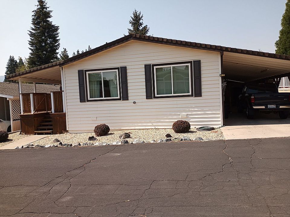 Double wide partially furnished, the furniture you see in the pictures is included with the mobile, vinyl siding, composite full length deck with cedar railing and wood roof, Trane ac/heat pump, concrete retaining wall, low maintenance yard river rock front and back, large back yard with 6' cedar fence and metal posts in concrete, metal building work shop, wood shed, cement side walks, dual pane vinyl windows, 15 year old roof with 30 year warranty, car port with wood roof and dual redwood stairs, carport door upgraded, new door locks front and rear, monitor heat, wood burning stove, ceiling fan, garbage disposal and dish washer, propane stove and water heater, washer and dryer, living room with vaulted ceiling and window sun shades. Need to income qualify with park managment. Call or text anytime for a walk through or additional information and/or pictures. Scott 530 925 0066