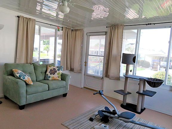 SALE PENDING. This TWO Bedroom, TWO Bath home has a split floor plan, bedrooms at opposite ends, giving your guests or roommate plenty of privacy. Nice front Florida room with separate AC. UNFURNISHED, appliances stay. Includes GOLF CART and yard equipment. Leaf filter on front gutters! 2022 ROOF. Priced to sell quickly!