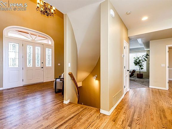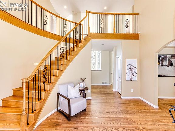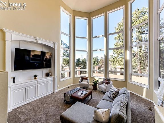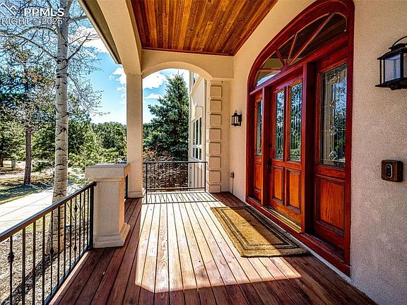 Experience the perfect blend of mountain charm and modern luxury in this stunning 5-bedroom, 5-bathroom home, nestled in the trees of beautiful Monument. Designed to embrace Colorado’s natural beauty, this home offers breathtaking mountain views from the living room, back patio, backyard, and private primary suite. Inside, you’ll find a spacious, open-concept layout with soaring ceilings, warm wood accents, and expansive windows that fill the home with natural light. The gourmet kitchen boasts high-end appliances, custom cabinetry, and a large island—perfect for entertaining. The main-level office provides a quiet retreat for remote work, while the three-car garage offers ample storage for vehicles and outdoor gear. The primary suite is a true sanctuary, featuring a spa-like ensuite and unmatched mountain views. Upstairs and downstairs living areas provide flexible space for family and guests, while the large home theater with a wet bar offers the ultimate entertainment experience. Stay active in the private home gym, then step outside to enjoy the peaceful, wooded surroundings from your back patio or backyard oasis. This exceptional home is situated in one of Monument’s most desirable communities, offering privacy, natural beauty, and easy access to top-rated schools, shopping, dining, and outdoor recreation.