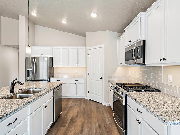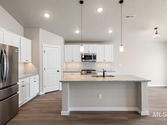 Brookfield with Country Elevation. This home features granite kitchen counters with pendant lights over the island, upgraded soft close cabinets and drawers, fireplace, extended patio, insulated 2 car garage, converted flex to a den with glass doors. Photo similar. This home is HERS and Energy Star rated with annual energy savings!
