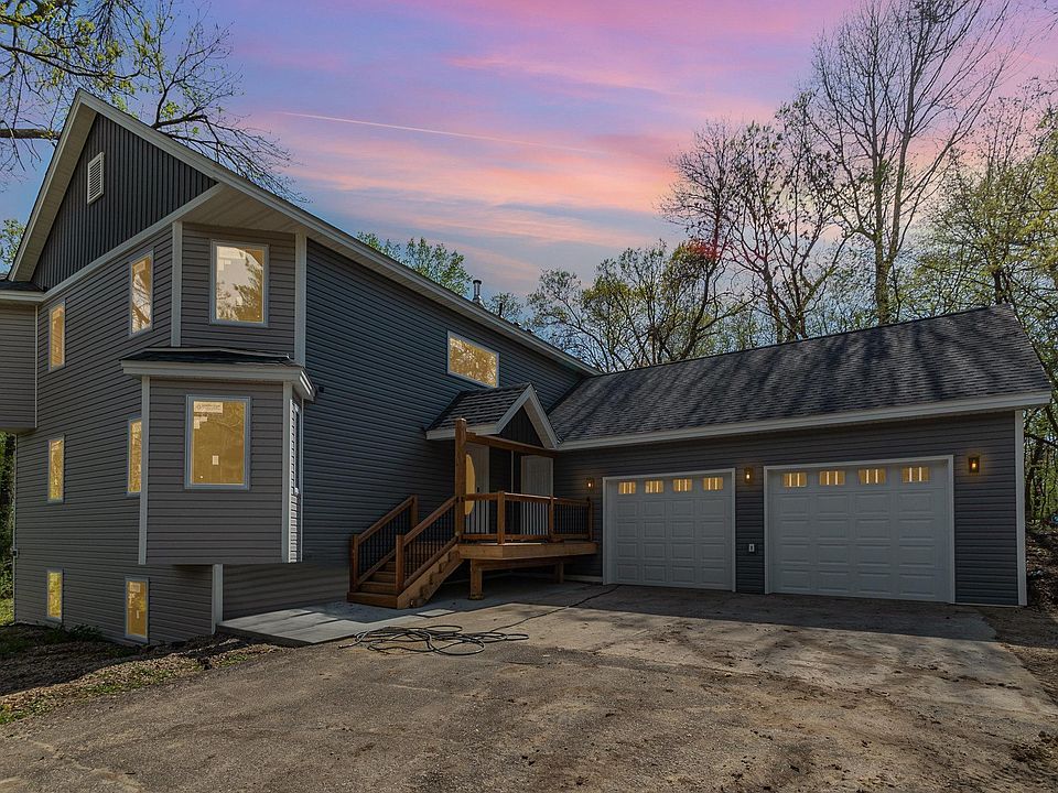 Custom build 2 story home on 2.5 acres 1 block from legends golf course. Major updates done, Furnace, Ac, Water heater, siding, soffits, doors, windows, roof, well pump and septic pump. Features 3 Bedrooms up with a office of owners suite. Open oak stairway, Laundry/mud room off garage. lower level walkout family room and billiard area with pool table. Built in bar, Bath rough in lower level. Large 2 car attached garage with 12' ceilings. Additional detached garage with shop area and storage loft.