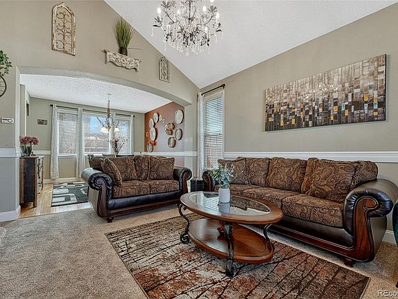 This exceptional single-family home in the highly desirable Smoky Ridge community in Centennial, Situated in the top-rated Cherry Creek School District and close to parks, trails, and shopping and offering a perfect blend of modern living and natural beauty. ** Peaceful cul-de-sac, this residence spans an impressive 3,200 sqft and features 5 spacious beds and 3.5 baths, providing ample room. Includes a two-car garage. ** Upon entering the home, you'll be greeted by a grand living room with vaulted ceilings, a textured finish, and a stunning chandelier that sets an elegant tone throughout the space. The hardwood floors flow seamlessly throughout the main level, enhancing the home's sophisticated charm. The kitchen, equipped with sleek stainless steel appliances, a central island, granite countertops, and a newer dishwasher and microwave, combining style and practicality. **The primary suite is a true retreat, featuring vaulted ceilings, an abundance of natural light. It also boasts a Juliet balcony that overlooks the serene surroundings. The attached en suite is equally impressive, offering a luxurious soaking tub, a double vanity, and ample storage.** Fresh exterior paint adds to the home’s curb appeal ** The home offers plenty of storage, both inside and out, making it as functional as it is beautiful.** The backyard is a serene retreat, complete with a tranquil low maintenance water feature that creates a calming ambiance, perfect for unwinding during Colorado evenings. The newer concrete patio provides an excellent space for outdoor dining or entertaining guests.