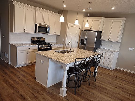 Immediate possession! A quality-built, two-bedroom, one den villa with numerous upgrades including painted, soft-close cabinets, granite counter tops and back splash, vaulted sunroom with fan, stone fireplace, upgraded all flooring, insulated garage with silent opener, upgraded faucets, patio, comfort-height toilets, two additional windows, extra-large capacity Maytag washer and dryer, custom Hunter Douglas blinds throughout, and best of all, immediate possession! Located in Bass Lake Crossing, a recently completed development by M/I Homes and bordering Maple Grove, is a quiet community of 91 single-family homes surrounded by wetlands and a walking trail. Monthly HOA includes garbage, lawn care, snow removal, sprinkler system (including water and maintenance), professional management, locked mailbox. Built by M/I Homes, Just minutes from groceries, restaurants, and the Shoppes at Arbor Lakes.